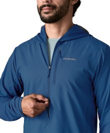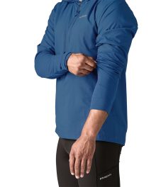 This water-repellent wind shirt is a no-brainer for runs in uncertain mountain weather. It’s fast drying. ultralightweight and breathable. with a stretch-knit hood and lower sleeves. and a durable water repellent (DWR) finish made without intentionally added PFAS. And. it packs into its own pocket for easy stowability. Made in a Fair Trade Certified™ factory.