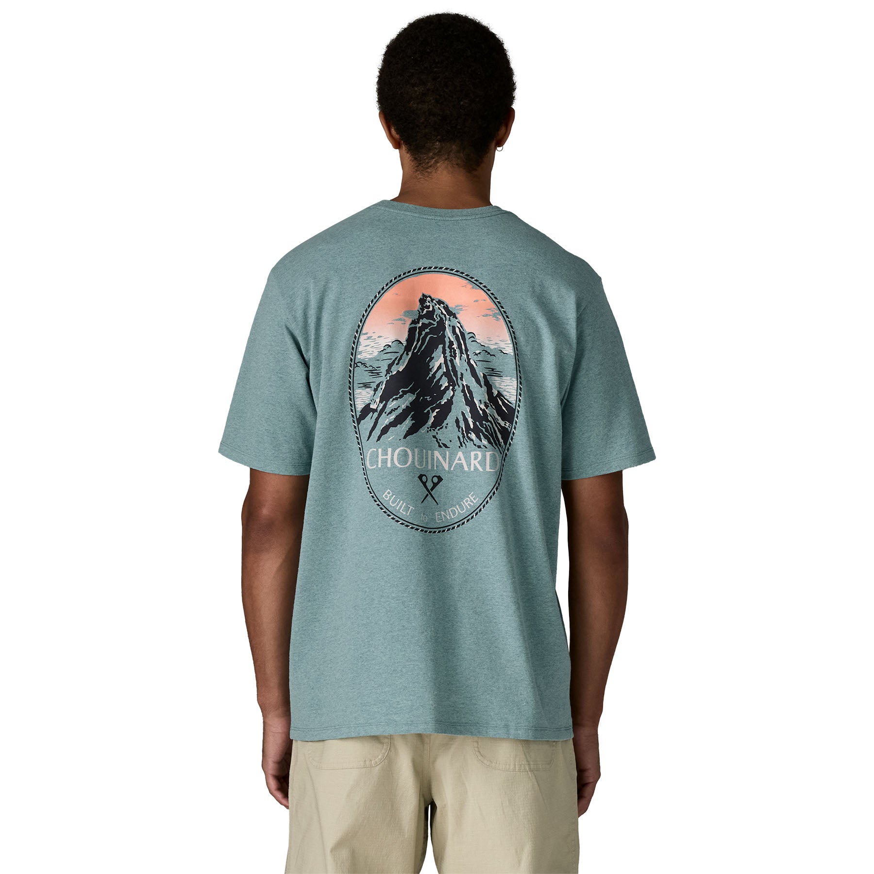 We added gradient-printed color to this classic graphic from the early days of Patagonia. The artwork is screen-printed on the Men’s Chouinard® Crest Pocket Responsibili-Tee® that’s made with recycled fabrics. By utilizing fabric scraps and recycled bottles. we reduce our reliance on virgin raw materials. Made in a Fair Trade Certified™ factory.