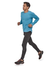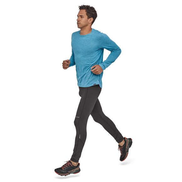 Cool-to-cold-weather running tights for wicking. warmth and breathability. mile after mile. Fair Trade Certified™ sewn.