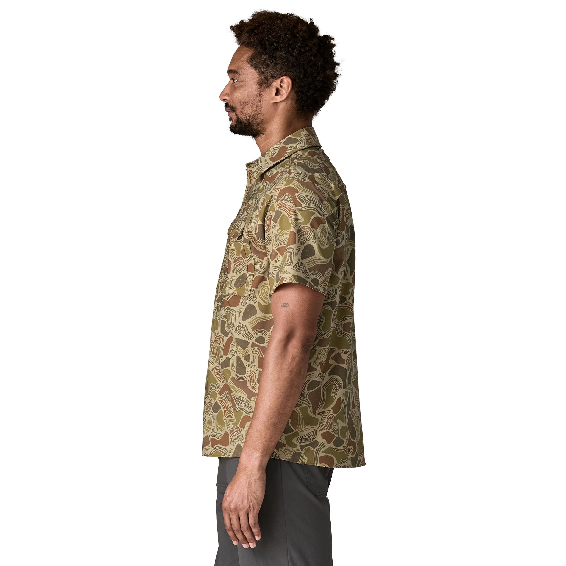 The do-it-all Men’s Short-Sleeved Self-Guided Sun Shirt combines intuitive. on-the-water/trail performance with 40+ UPF sun protection and breezy. all-day comfort. Stretchy. quick-drying 100% recycled polyester fabric moves athletically. stays cool and looks snazzy in any situation. Made in a Fair Trade Certified? factory.