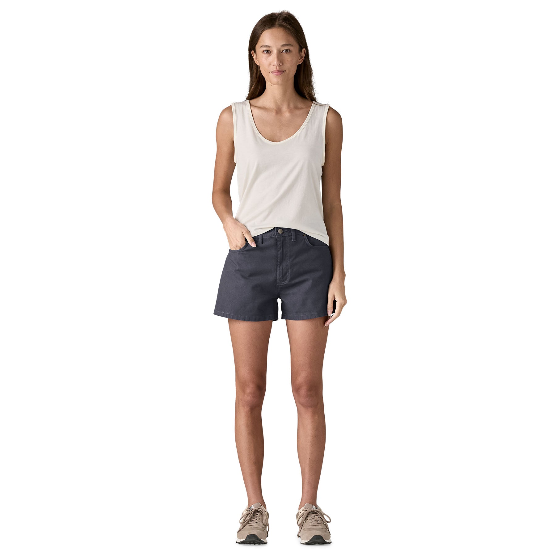 For easygoing days when you feel like merging with your surroundings. we made these classic five-pocket shorts with wearable 97% organic cotton stretch canvas that will flatter and function across a range of daily activities. With an A-line shape to the leg. a zip fly. belt loops and plenty of pockets. they include everything you’ve come to expect in a useful closet essential that will work for years to come. Inseam length is 3½. Made in a Fair Trade Certified™ factory.