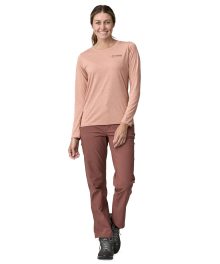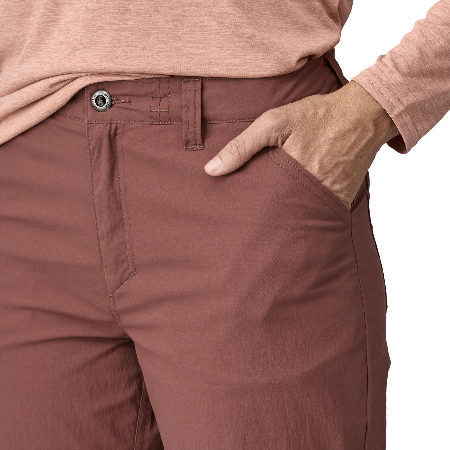 These multifunctional hiking pants are designed for comfort and unconstrained movement. now with a mid rise and a sleek. modernized fit to move with you. They are made of 96% NetPlus® postconsumer recycled nylon made from recycled fishing nets to help reduce ocean plastic pollution/4% spandex plain weave; with a durable water repellent (DWR) finish made without intentionally added PFAS to shed light moisture. and 40+ UPF sun protection. A roll-up cord and a button fastener on each pant leg boosts versatility. The inseam is 28; also available in a 30 inseam.