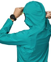 Ultra-lightweight and ultra-stashable. this fully recycled. 3-layer. waterproof/breathable performance shell stuffs into its own chest pocket for quick deployment when high-mountain weather goes south. Made in a Fair Trade Certified? factory.