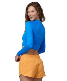 Featuring a shorter. cropped silhouette that layers easily over a bikini. this lightweight. stretchy. fast-drying full-sleeved surf rashguard is built from either 83% recycled nylon/17% spandex (solids) or 83% recycled polyester/17% spandex (prints). Made in a Fair Trade Certified™ factory.